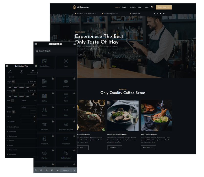 Elementor offers intuitive interface and flexibility. It is one of the most user-friendly page builders for WordPress. Customize your Millennium template with ease using a set of additional elements.